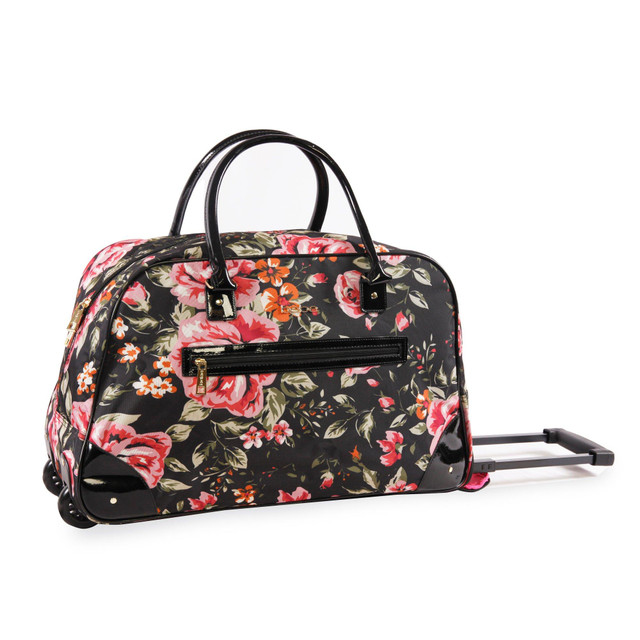 Travel in style with your clothing and other essentials packed inside this chic 22 in. Giselle duffel bag by Bebe. With it's spacious main compartment, smooth gliding wheels and stylish prints, you will travel fashionably with ease. Measures 22 in. x 13.5 in. x 9 in.