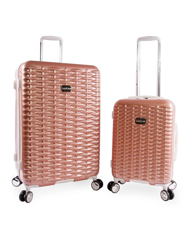 This exquisitely designed Lydia 2 piece luggage set will leave a lasting impression for years to come. Made with lightweight polycarbonate, it is durable yet versatile. Our beautifully crafted 8 wheel, 360 degree spinner system and aluminum trolley handle are both functional and chic, which will allow you to travel fashionably with ease. Suitcases measure 21 in. x 13 in. x 9 in. and 29 in. x 19 in. x 11 in.
