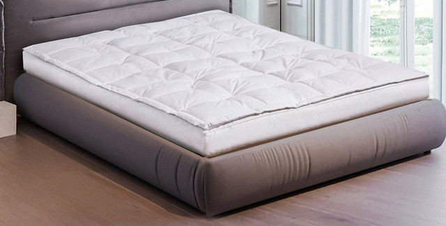 This All-season featherbed creates a sumptuous sleeping surface changing your bed from ordinary to extraordinary. The dual layer design starts with a 5 inch pillowtop filled with white down while the featherbed base is filled with small waterfowl feathers. The 233 thread count, breathable 100% cotton cover only adds to the feel and comfort.