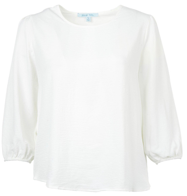 Introducing this Blue Sol Solid Color 3/4 Sleeve Top, a perfect blend of modern style and comfort. Crafted from soft crinkle-style fabric, this top offers a soft, textured feel that drapes beautifully. The dolman sleeve style adds a chic look, casual touch, making it ideal for both everyday wear and special occasions. The top length measures approximately 26 in. Fabrication is 100% polyester.