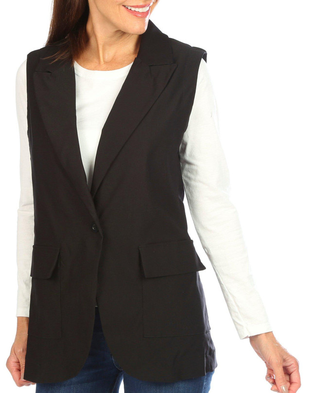 Elevate your wardrobe with our Sleeveless Vest, a perfect blend of style and functionality. This chic vest features a sleek single-button front, adding a touch of sophistication to any outfit. The two front pockets provide both convenience and a casual flair, making it ideal for layering over your favorite tops. Whether youre dressing up for a night out or adding a polished touch to your everyday look, this versatile vest is a must-have addition to your collection.