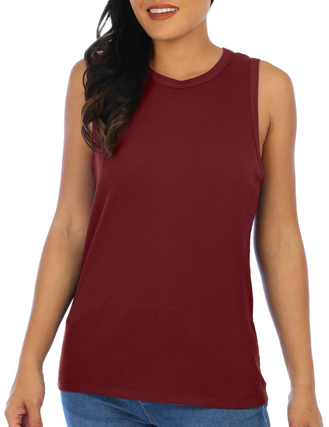 Elevate your everyday style with this versatile tank top, crafted from premium ribbed fabric for a flattering, contoured fit. The classic crew neck design adds a touch of timeless elegance, making it perfect for layering or wearing solo. Whether you're hitting the gym or lounging at home, this tank top offers unbeatable comfort and effortless chic. Fabrication is 51% cotton, 44% rayon, and 5% spandex.
