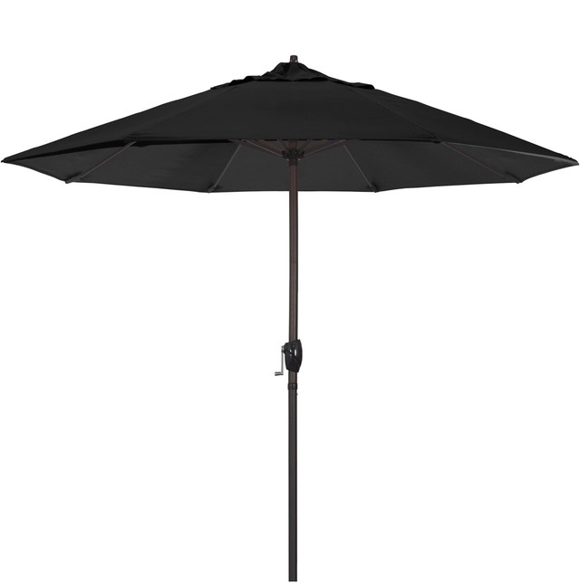 This large 9 foot umbrella offers the residential owner a beautiful market design. The aluminum frame has a simple crank to open and auto tilt design. Umbrella features aluminum pole and 8 heavy duty aluminum ribs. Olefin fabric features synthetic fibers & 40+ UPF. Base to top measures: 102''.