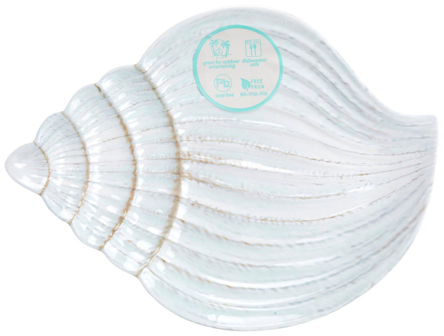 The 12 in x 9 in Conch Serving Tray from Coastal Home is a charming addition to any coastal-themed decor. Perfect for serving snacks or drinks, this tray features a beautiful conch design that brings a touch of the seaside to your home. Its size makes it versatile for various uses, whether youre hosting a gathering or simply enjoying a quiet evening. Add a coastal flair to your entertaining with this stylish and functional serving tray.