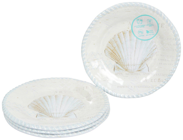 Bring a touch of the ocean to your dining table with the 4-Pack Shell Print Salad Plates. Measuring 9 inches by 9 inches, these plates feature a charming shell design, perfect for adding a coastal vibe to your meals. Ideal for salads, appetizers, or desserts, these plates combine functionality with seaside elegance.