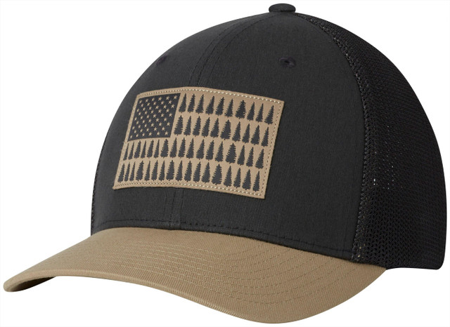 Keep each adventure going strong with this PFG Mesh Stateside hat by Columbia. Whether you're on the boat or running errands, this versatile & stylish cap is the perfect accessory, featuring an American flag print with trees, PFG triangle patch on the back, a breathable mesh back, and Flexfit band for an easy stretch fit.