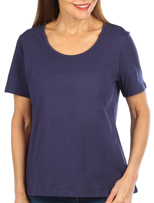 Coral Bay offers classic casual collections for your relaxed lifestyle. This short sleeve top features a solid color design on lightweight knit fabric, a scoop neckline, and a classic fit. The top length measures approximately 24 in. Fabrication 100% cotton.