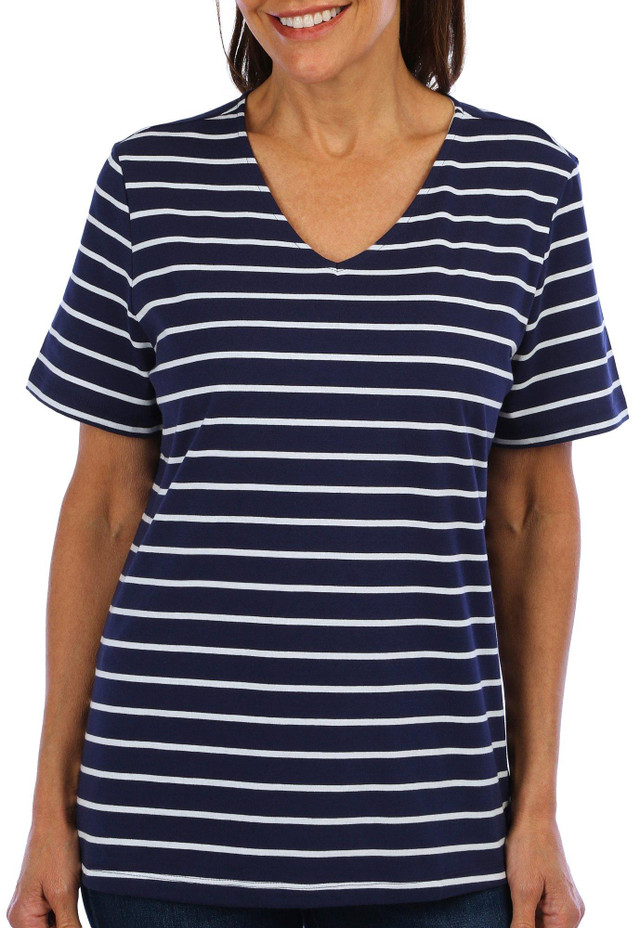 Coral Bay Womens Striped V-Neckline Short Sleeve Top