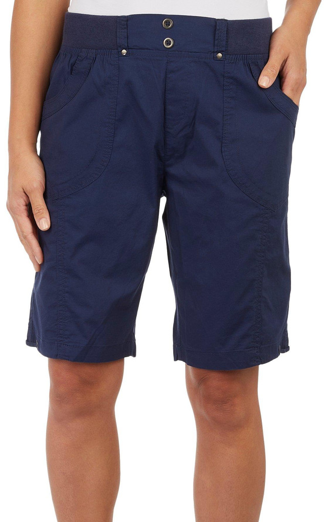 Dash Womens 10 in. Solid Kate Comfort Waist Bermuda Shorts