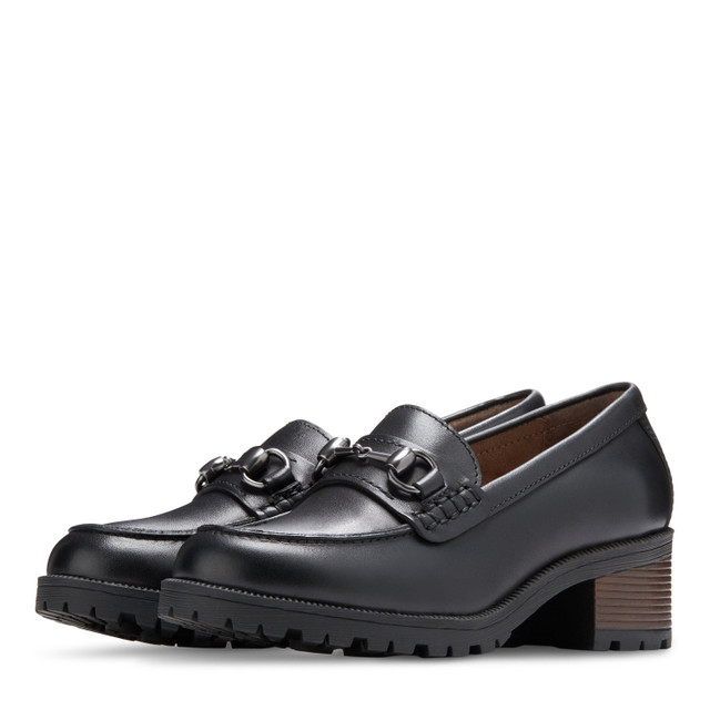The tailored lines of a classic penny loafer along with an updated block heel. Full-grain leather upper conforms to your foot for a custom fit. Soft, breathable fabric-lined upper and insole. Padded comfort insole with moisture control for breathable, all day wear. Flexible TPR rubber outsole for great comfort, slip resistance, insulation and durability. Heel Height: 2.