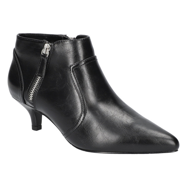Enhance your wardrobe with the Annalee dress bootie by Easy Street. The pointed toe design offers ultimate sophistication. The feminine overlay is accentuated with an on-trend self-covered kitten heel. The double zipper gives a contemporary look to this timeless style. Padded heel-to-toe for all day comfort.