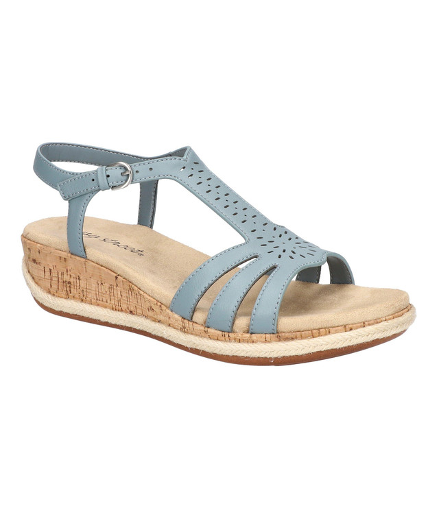 Perf details, a cork inspired wedge paired with an espadrille accent makes a the Dorinda by Easy Street an essential add to your sandal collection. The heel to toe padded insole adds comfort features that will keep you going throughout the day. Adjustable buckle provides a more customizable fit.