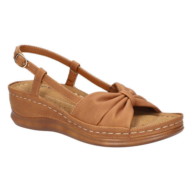Take on the summer in comfort and on-trend with the Jupiter sandal by Easy Street. Designed with details in mind, the on-trend knotted upper and super light and flexible artisan construction with a unique slingback design. The stitched heel-to-toe padded footbed and the adjustable buckle will have your feet walking comfortably with the perfect fit.