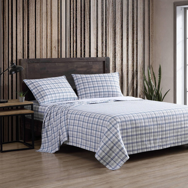 Slumber in comfort all night long between the sheets of an Eddie Bauer cotton flannel sheet set. Available in a range of charming patterns and colors, there is a set that matches and enhances any bedroom décor. The approved process for finishing our quality flannel sheets is an 8-leveled brushing standard.Sheet set includes one flat sheet, one fitted sheet, and two pillowcases (one for twin sizes)