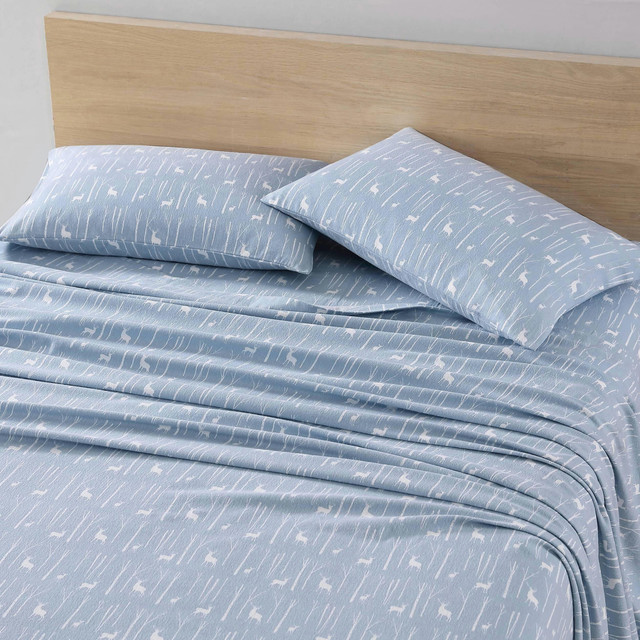 Slumber in comfort all night long between the sheets of an Eddie Bauer cotton flannel sheet set. Available in a range of charming patterns and colors, there is a set that matches and enhances any bedroom décor. The approved process for finishing our quality flannel sheets is an 8-leveled brushing standard.Sheet set includes one flat sheet, one fitted sheet, and two pillowcases (one for twin sizes).