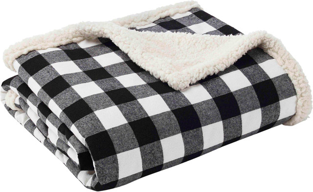 Printed on 100% cotton, this decorative throw blanket features a plaid pattern. Throw reverses to a plush sherpa fleece for comfort. Measures 50'' x 60''.