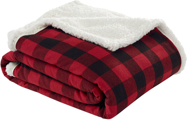 Printed on 100% cotton, this decorative throw blanket features a plaid pattern. Throw reverses to a plush sherpa fleece for comfort. Measures 50'' x 60''.