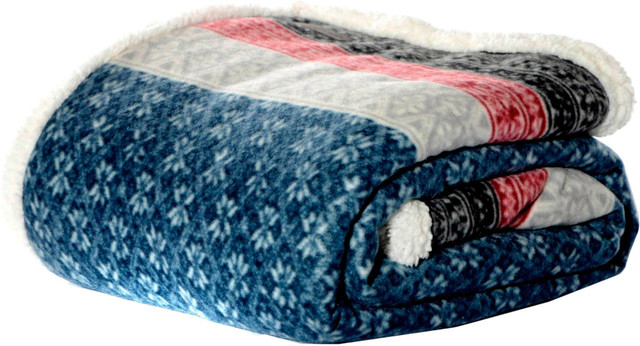 Printed on polyester, this decorative throw blanket features an stripe pattern. Throw reverses to a plush sherpa fleece for comfort. Measures 50'' x 70''.