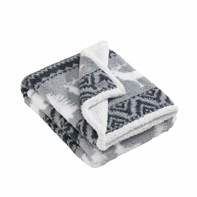Eddie Bauer's throw-blankets are the ultimate upgrade to couch lounging - making them the perfect gift for yourself or someone special. Handsome signature novelty print on 100% polyester faux shearling, with a solid cozy reverse. Fully reversible design is versatile, giving you multiple looks. Lightweight and packable, easy for use at home or on the go. Features authentic Eddie Bauer logo patch.