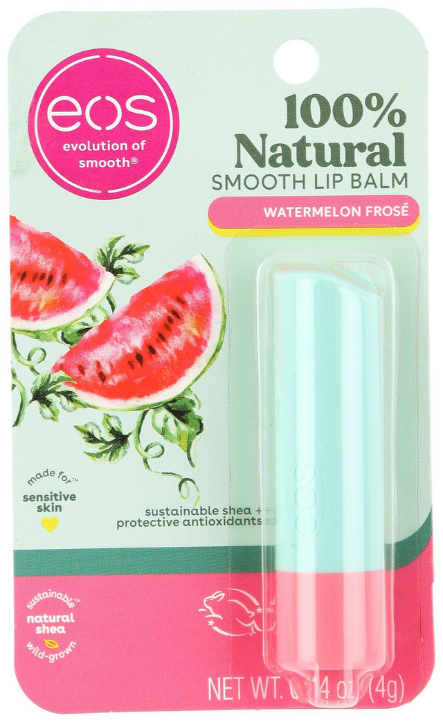 This Smooth Shea Butter Lip Balm contains sustainable, wild grown, natural shea, weightless coconut oil, and protective antioxidants. Formulated for sensitive skin. Watermelon Frose flavor. Contains 0.14 oz.