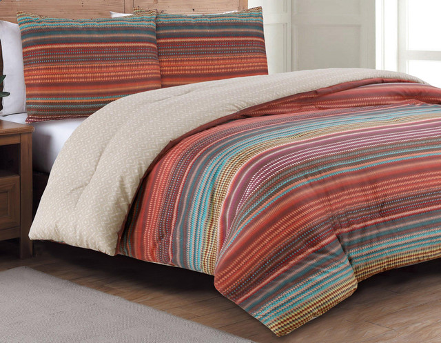 Taj multicolor zig zag print adds an eclectic touch to your bedroom. The super soft and reversible printed comforter set combines both comfort and fashion in one stunning ensemble. 100% polyester. Set includes one comforter and two pillow shams (one for twin size).