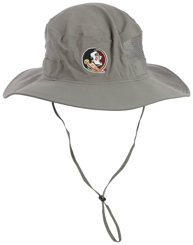 Support your school with this sun hat featuring built-in UPF 50, an ultra-sweat-wicking headband, and a mesh vent panel. Omni-Wick sweatband and mesh venting actively breathe and pull moisture away from your skin to keep you cool. It also has a 3 inch brim and adjustable drawcord and toggles on the back.