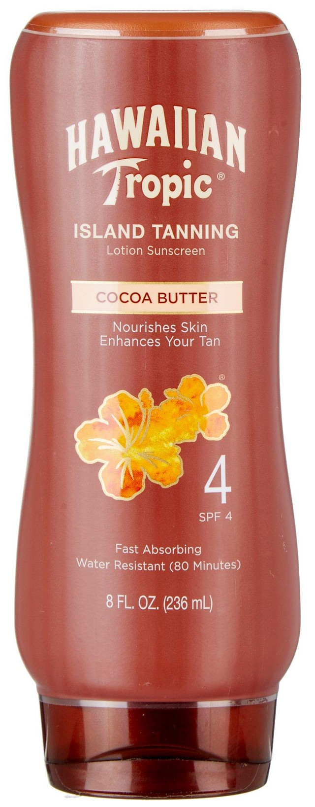 Hawaiian Tropic Island Tanning SPF 4 Sunscreen Lotion contains cocoa butter to nourish yor skin and enhance your tan. Fast absorbing and water resistant for up to 80 minutes. 8 fl. oz.