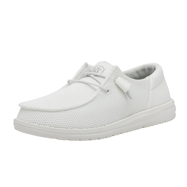 The Hey Dude Wendy Funk Mono White is perfect for spring and summer. It's monochrome design, gives this shoe a fresh, clean look, like none before. Stretchy Knit, cushy foam insole, ultralight outsole, means all day comfort without ever lacking style!