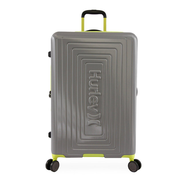 Zip through the terminal and to your destination with this hard side, spinner luggage from Hurley. Made of durable super abs hardshell technology, you'll be at ease knowing your clothing and accessories will be safe. This luggage features push button trolley handle, is expandable which offers 25% additional capacity, top, side and bottom carrying handles for easy lifting, multiple interior compartments and interior mesh pockets and tie down straps. Suitcase measures 29 in. x 19 in. x 12.5 in.