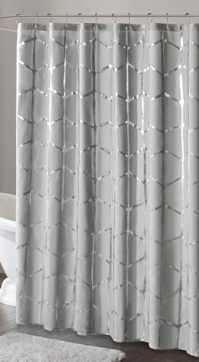 Freshen up your bathroom with the enchanting style of the Intelligent Design Raina Printed Metallic Shower Curtain. Flaunting a geometric metallic print, this stunning shower curtain creates a fun and eye-catching look! Machine washable for easy care, vivid hues brings a hip and modern flair to your bathroom. Measures 72''L x 72''W.