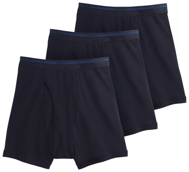 Get going in underwear made for your active life by Jockey. These lightweight boxer briefs offer soft & breathable 100% cotton fabric for optimal comfort, moisture wicking properties to help keep you drier when you're on the go, StayNew technology that keeps them looking & feeling brand new after every wash, a working fly, and branded elastic waist. Pack includes three pairs of boxer briefs.