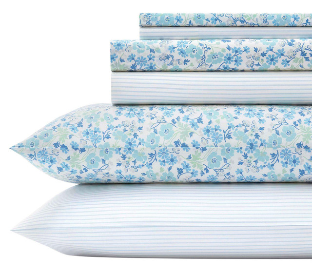 Add a sweet touch of style to your bed with the Laura Ashley Jaynie sheet set. This sheet set features a lovely floral print for a unique well-coordinated style. Set includes one flat sheet, one fitted sheet, and two pillow cases.
