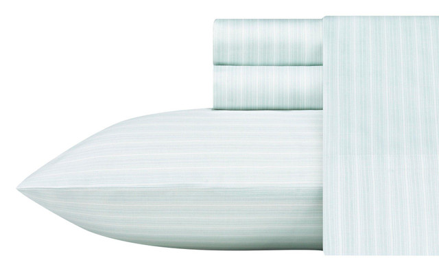 Add a sweet touch of style to your bed with the Laura Ashley Lottie sheet set. This sheet set features a lovely stripe print and 100% cotton fabrication. Set includes one flat sheet, one fitted sheet, and two pillow cases. Twin fits mattresses up to 13'' deep. Full fits mattresses up to 14'' deep. Queen and King fits mattresses up to 15'' deep.