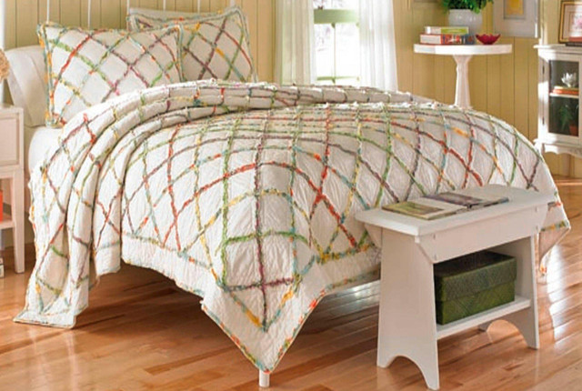 Laura Ashley Opal Standard Sham features 100% cotton fabrication and colorful bands of appliqued ruffles in a lattice design. Coordinating Opal quilt sold separately.