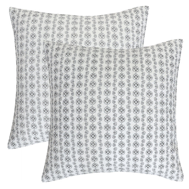 The Basel euro shams are the perfect complement to the Levtex Home Basel collection. This is the perfect accessory to add a layer of dimension and truly complete your bedroom. Sized at 26 x 26 in., the euro shams feature a bold geometric medallion pattern in black and white. Made from 100% cotton, the Basel euro shams are easy to care for. They come as a set of 2 without a filler.