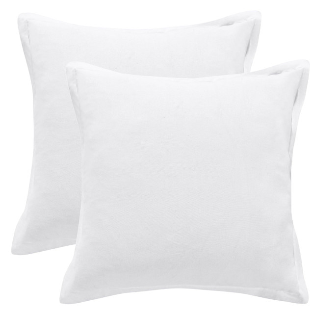 Designed to finish the look of the Rhapsody bedding collection, these euro shams are also useful as an extra layer to lean back on while you read or watch television. Each euro sham is sized at (26x26in.) and features rich durable farmhouse cotton fabric in in plain white, with a thick border to complete the look. They come as a set of 2, pre-filled with a polyester inner.