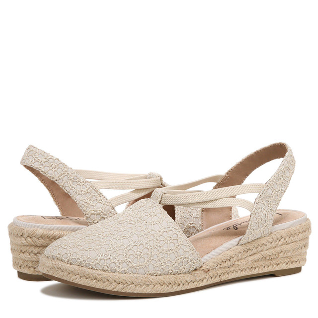 Give your look some interest in this artful and comfortable wedge. Fabric or canvas upper with an almond toe, slip-on fit, and stylish woven heel. Soft System® comfort package provides all-day support, flex, and cushioning. Get next-level comfort with Velocity 2.0®, featuring luxe linings, superior cushioning, and a premium insole with shock absorption & pressure distribution. Traction sole provides you with extra stability. Just Right Height 1 and 3/4 inch heel.