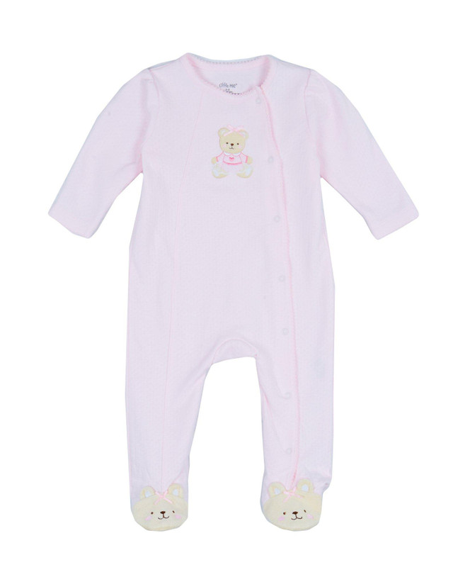 Designed to be worn for sleep or play, this baby girl footie is a newborn wardrobe essential. Outfit features easy-change snaps from neckline to feet, a cute bear applique and novelty bear toes.