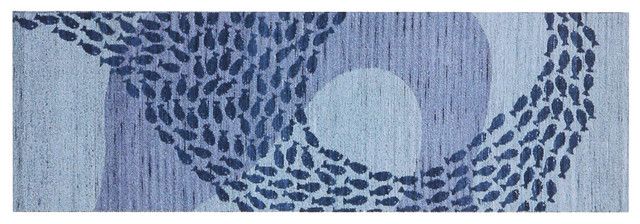 Add a charming touch to your home with this Kennard Area Rug. Featuring a colorful design including a whimsical school of fish, this rug is both stylish and functional. Its durable construction ensures long-lasting use, while the soft texture provides comfort underfoot. This runner rug adds a cozy and welcoming feel to your home decor. Measures 3 ft x 8 ft.