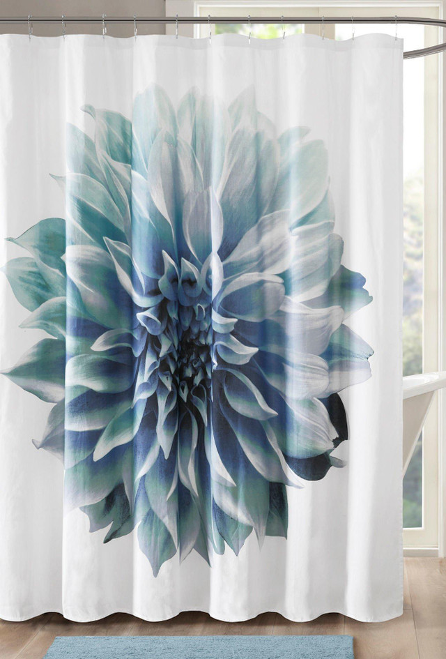 Breathe a new life into your bathroom with the Madison Park Norah Cotton Percale Shower Curtain. This cotton shower curtain displays a photo realistic floral print for a beautifully stunning look. The vibrant hues add a fresh splash of color to your bathroom, while the 200 thread count provides an alluring textured feel. Measures 72''L x 72''W with 12 button holes. Machine washable for easy care.
