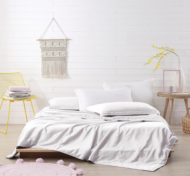 The 100% long-staple silk adjusts to your body temperature and shape and drapes perfectly around you. Silk Comforters let your skin also breathe while you sleep, so you will stay warm and comfortable all night long without overheating. In addition, it provides you with a healthier sleep environment from the natural hypoallergenic qualities, which are less likely to grow bacteria as they are naturally anti-fungal. Shell Fabric: 68%/32% Rayon/cotton, Fill Material: 100% long staple silk.