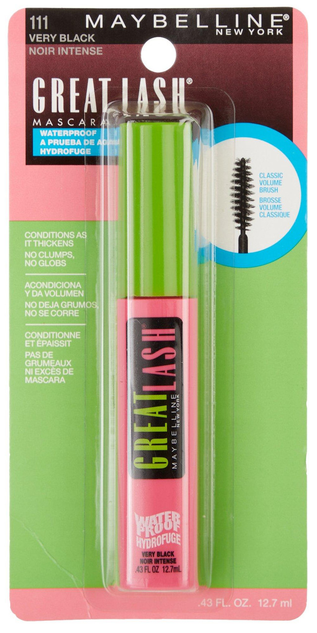 This Waterproof Very Black Great Lash Mascara from Maybelline conditions as it thickens. It glides on smoothly, building to give you a full lash look. Expiration 6 months from first use. .43 fl. oz.