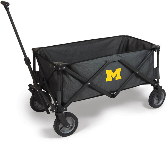 The Adventure Wagon is a utility wagon with heavy-duty wheels & telescopic handle that folds into a compact size and includes a fitted cover. Made of 600D polyester with a powder coated steel frame. Measures 35.6''L x 18.9''W x 21.9''H, open and 10''L x 11''W x 30''H, closed.