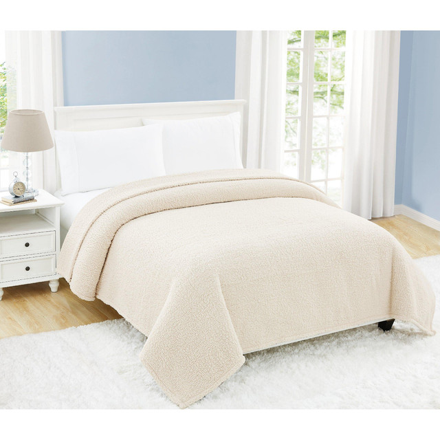 Experience sleeping on a cloud with this Sherpa blanket from My World. This soft and fluffy blanket will elevate any sleeping experience with 100% polyester faux Sherpa fabric. Offered in a variety of colors, this blanket will accentuate any room beautifully while providing extra comfort and warmth. Measures: Twin: 68 in x 90 in; Full/Queen: 90 in x 90 in