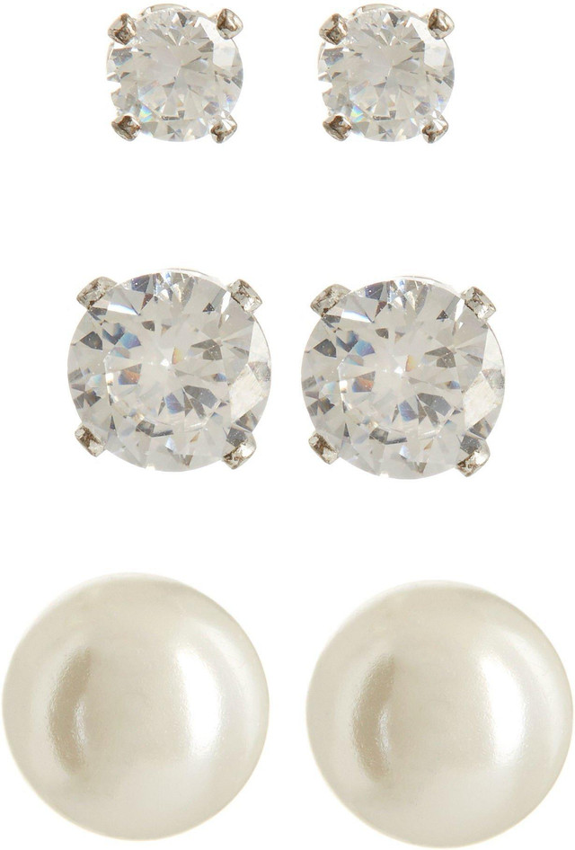 You can't go wrong with this trio earring set by Napier! This set features two pairs of simulated crystal accented stud earrings and one pair of simulated pearl stud earring.