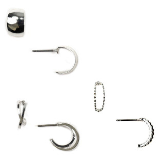 Set of three that features a pair of thick hoop earrings, crisscross hoop earrings and textured 2-row hoop earrings measuring at .55''. Earrings have a silver-tone finish and complement any look.
