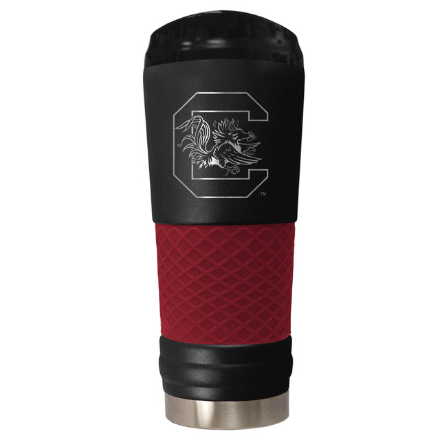 Show your team spirit! This South Carolina Gamecocks Draft Tumbler is vacuum insulated and holds 24 fluid ounces. It features laser etched Rally Cry detail and is powder coated in team colors with an alternate team color silicone grip. A great way to support your team while on the go. 24 oz.