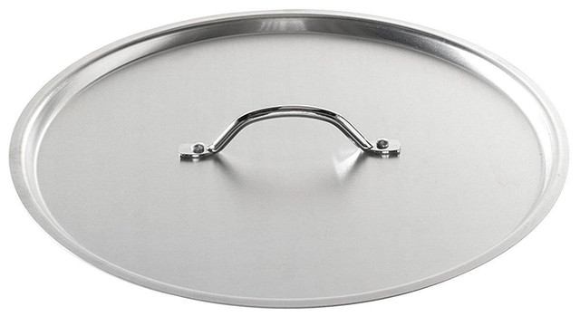 For simmering without spattering, this aluminum Nordic Ware 13'' Stock Pot Cover fits 16 & 20-quart stock pots. Oven safe up to 400 degrees. Formed aluminum cover measures 13.875''L x 13.875''W x 1.375''H.