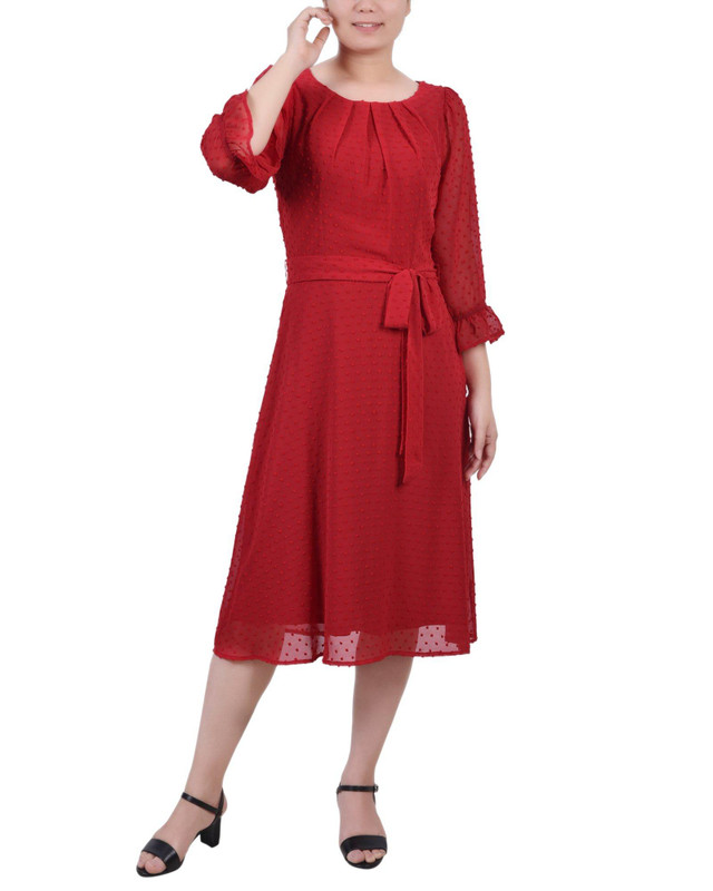 NY Collection Missy 3/4 Sleeve Belted Swiss Dot Dress
