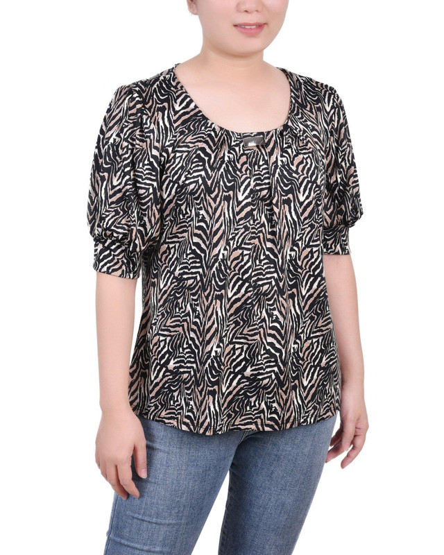 NY Collection Petite Short Sleeve Balloon Sleeve Top